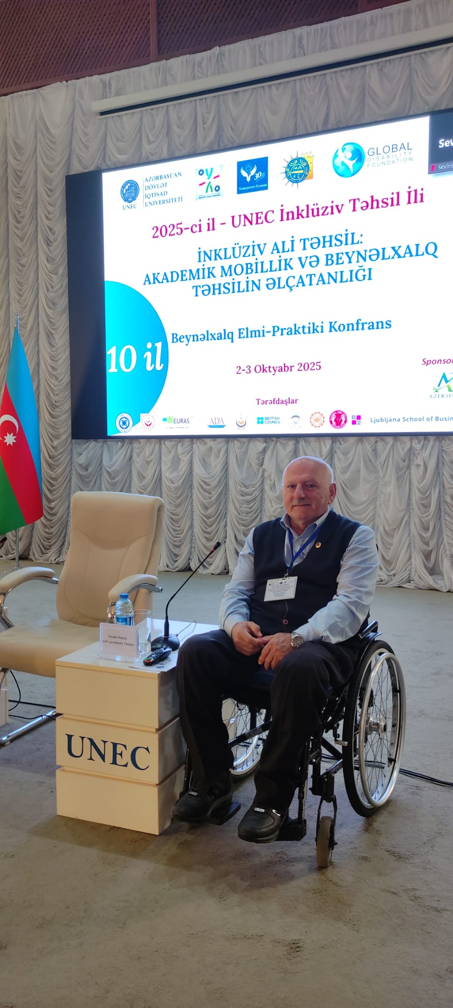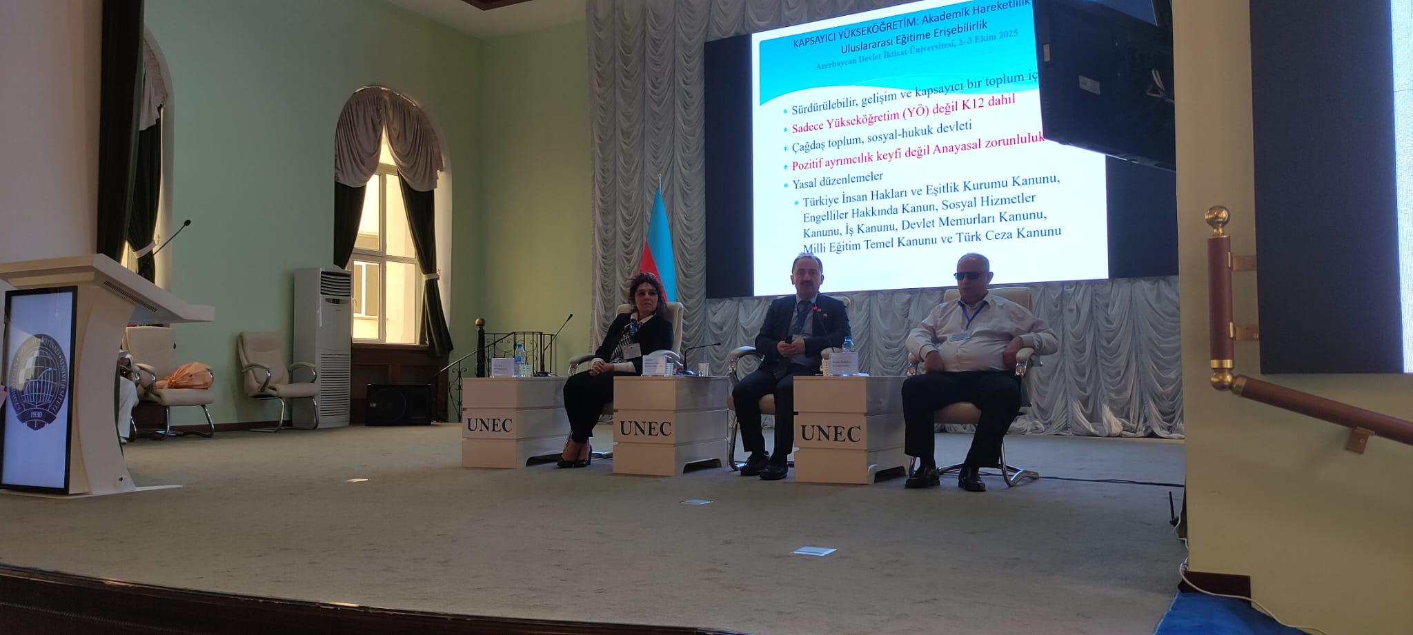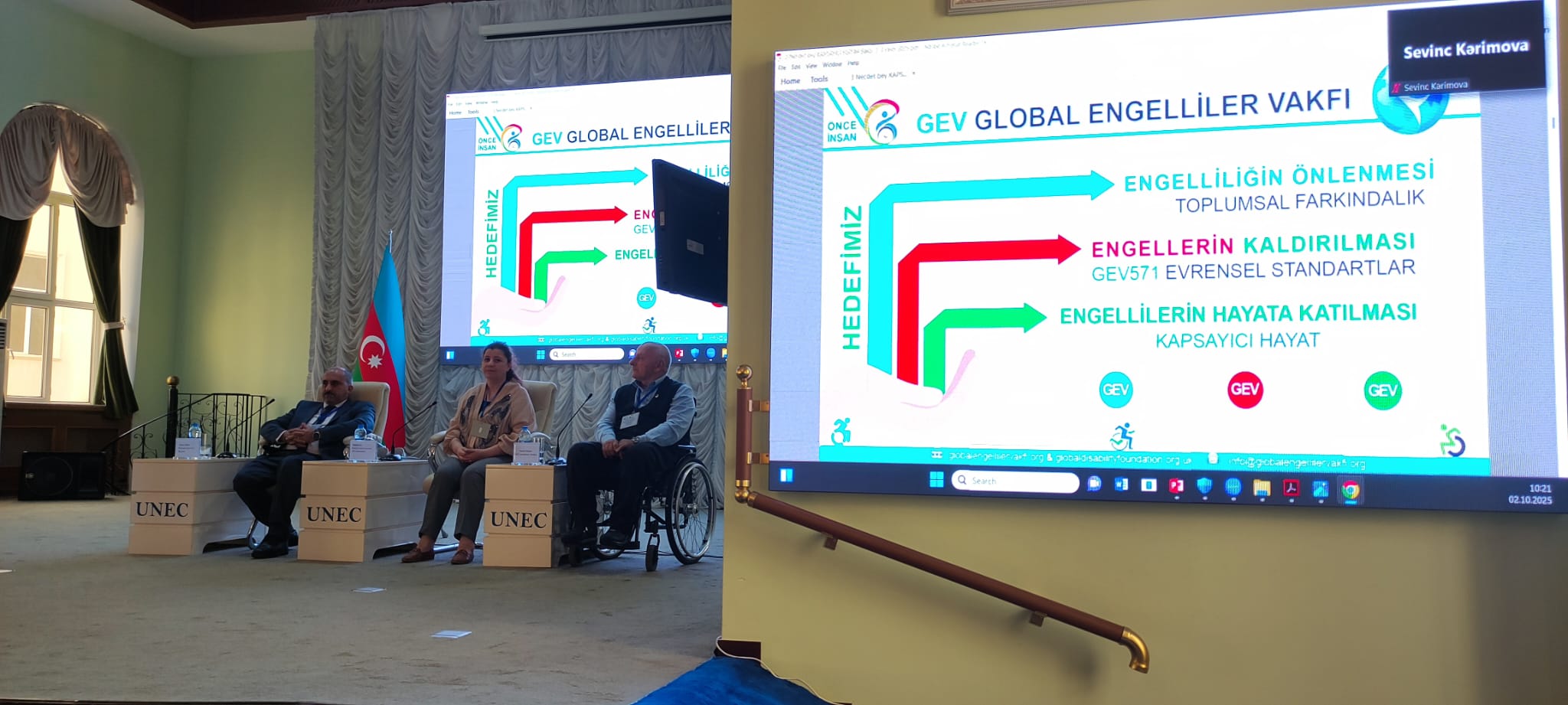Global Engelliler Vakfı (GEV), Azerbaycan’ın başkenti Bakü’de düzenlenen “Kapsayıcı Yükseköğretim: Uluslararası Eğitimin Akademik Hareketliliği ve Erişilebilirliği” başlıklı uluslararası konferanstaki sunumlarını başarıyla tamamladı. Azerbaycan Devlet İktisat Üniversitesi’nde (UNEC) 2-3 Ekim 2025 tarihlerinde gerçekleşen konferans, alanında dünyanın dört bir yanından uzmanları bir araya getirdi.